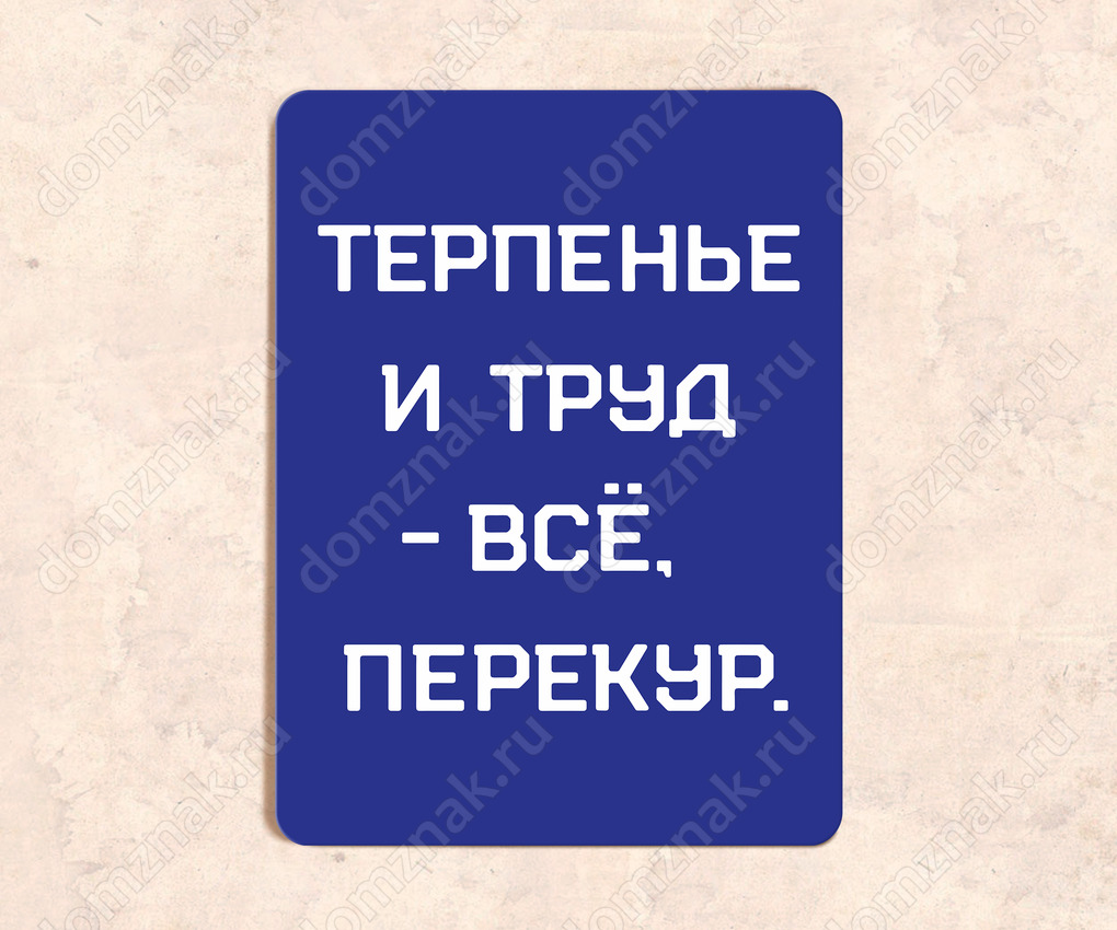 Табличка «Терпенье и труд - все, перекур»