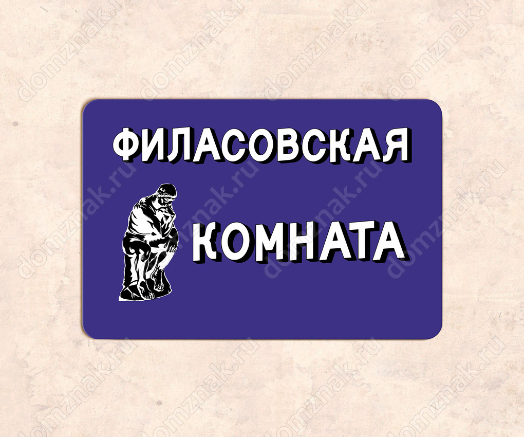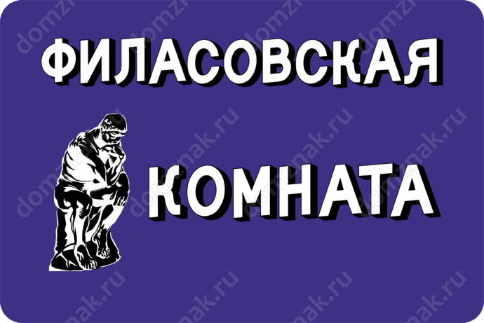 Табличка «Философская комната» изготовлена из пластика ПВХ, толщиной 4 мм. Изображение наносится по технологии УФ-печати. Табличка предназначена для использования как в помещении, так и на улице.